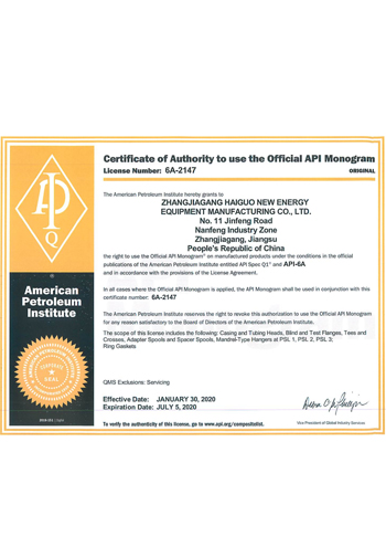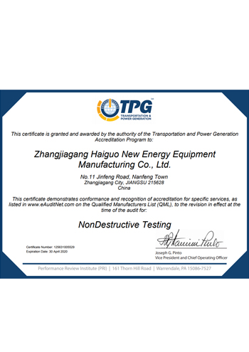 公司取得了美國ABS、法國BV、中國CCS、挪威DNVGL、韓國KR、英國LR、日本NK、意大利RINA等全球八大船級(jí)社的工廠認(rèn)證證書,建立了完善的產(chǎn)品質(zhì)量管理體系。先后獲得了美國API20B資質(zhì)證書、API6A資質(zhì)證書、APIQ1體系證書、TPG的NDT認(rèn)證證書、TPG 熱處理認(rèn)證證書、歐盟PED等認(rèn)證證書,同時(shí)也通過了一些國際客戶具有高度專業(yè)要求的資格認(rèn)證。